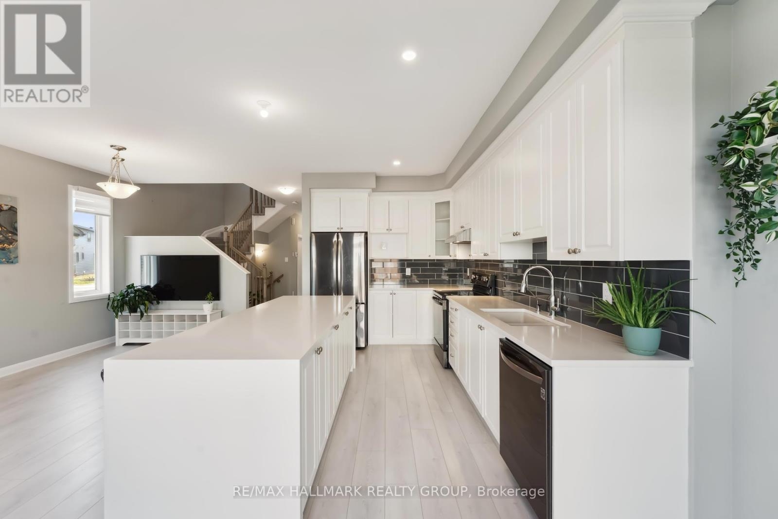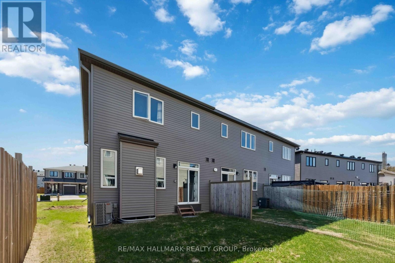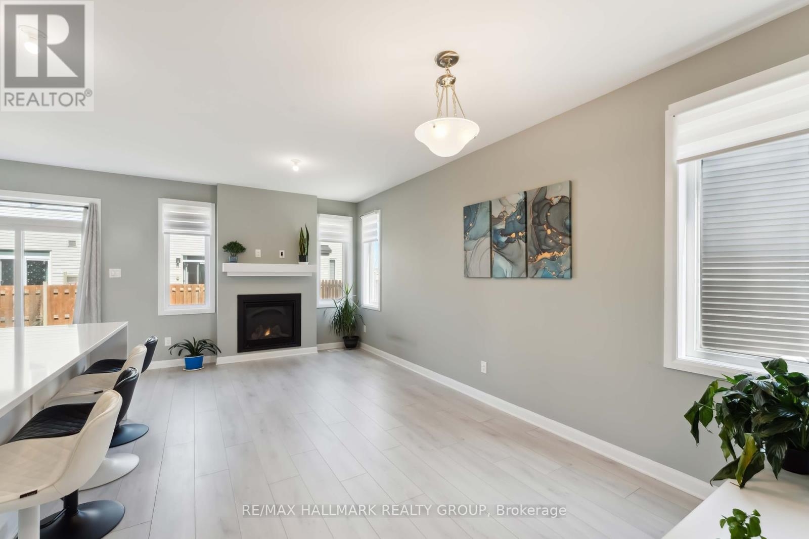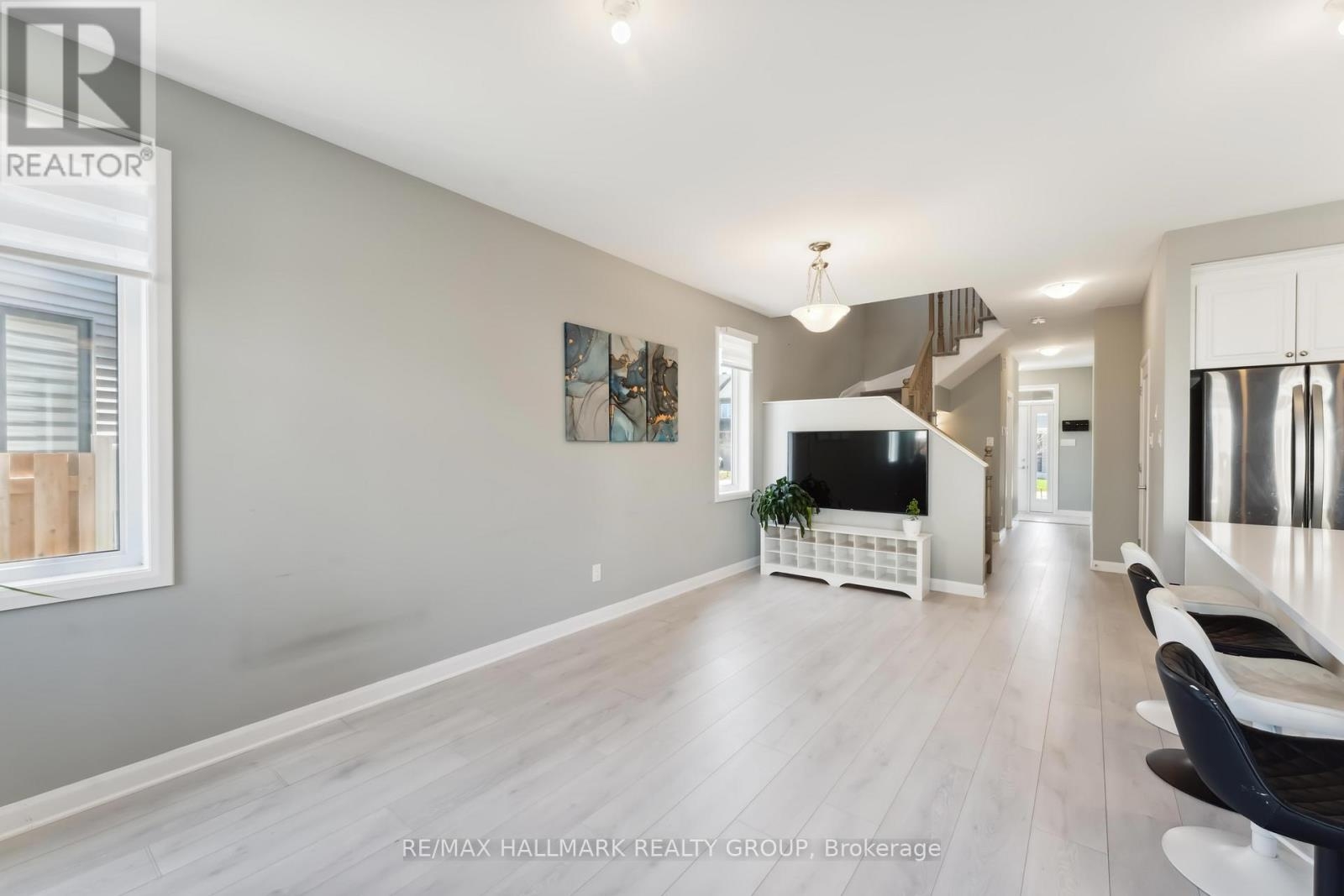 This meticulously maintained 2022 Minto Tahoe end unit is move-in ready and boasts a wealth of premium upgrades throughout.The main floor offers a convenient mudroom directly off the garage and an upgraded powder room, both complementing the bright and airy open-concept living space which showcases stunning quartz countertops and a waterfall kitchen island with comfortable seating for four. The upgraded kitchen cabinetry, w/extended height and crown molding, maximizes storage and exudes a luxurious feel. In the living/dining area, a gas fireplace with blower creates a warm and inviting ambiance.The upper level benefits beautifully from the end-unit design, with a large window illuminating the hallway with natural light. The generously sized bedrooms each have upgraded doors. The upper level bathrooms offer numerous upgrades including quartz countertops, double sinks, and even a central vacuum kick pan in the ensuite. A large and conveniently located laundry room completes this level.The finished basement features elegant maple hardwood railings and stairs leading to a fantastic rec room, along with bathroom and a large amount of storage space.The garage comes with a 40-amp Electric Vehicle EV Charger, and high ceilings for extra storage space. Outside you are steps away from the serene Avalon Trail Path and Aquaview Park which is a beautiful place to take stroll and enjoy the outdoors. New park planned across the street. Convenient location withtons of amenities (schools, groceries, restaurants, gas, transit) minutes away. Further upgrades include: smooth ceilings, pot lights on the mainfloor, high-end appliances, central vac w/kick pans in kitchen and bathroom, upgraded interior doors, gas line options for the stove and dryer, network wiring, sound insulation in laundry room, TV rough-in, 2-ton AC unit, window blinds, eavestroughs.Truly, everything has been taken care of. Simply unpack and enjoy! (id:2469)