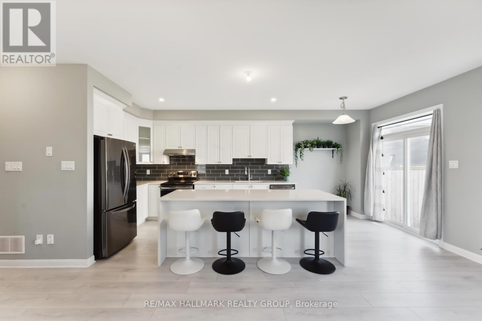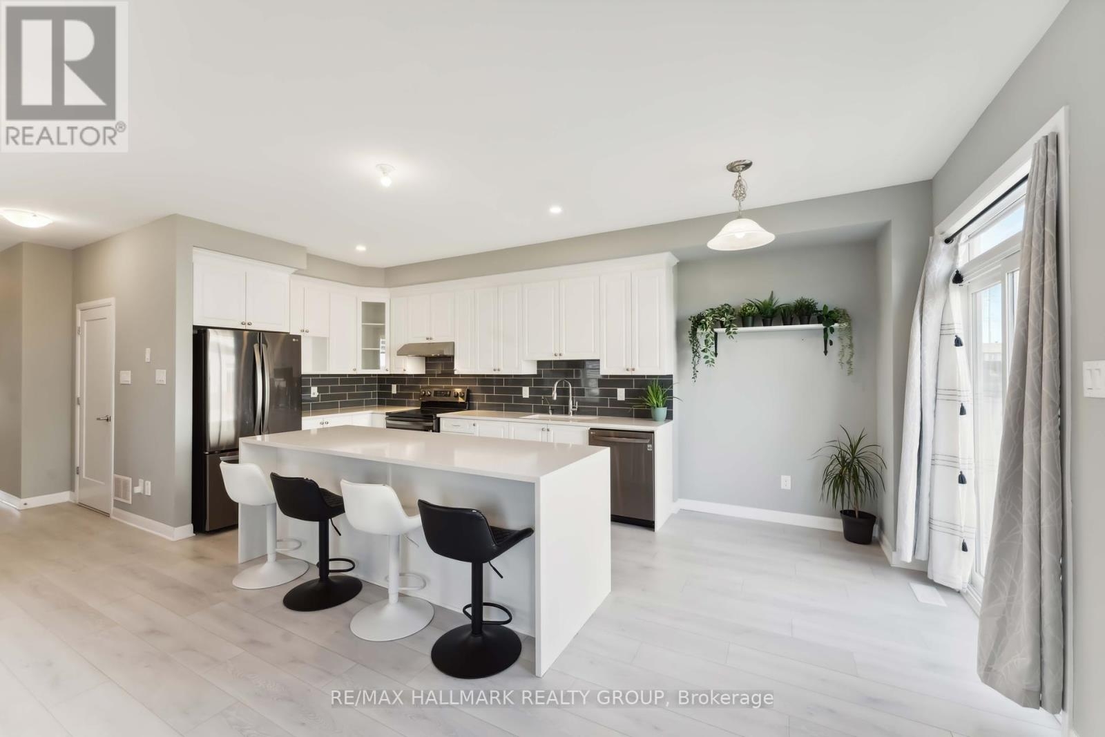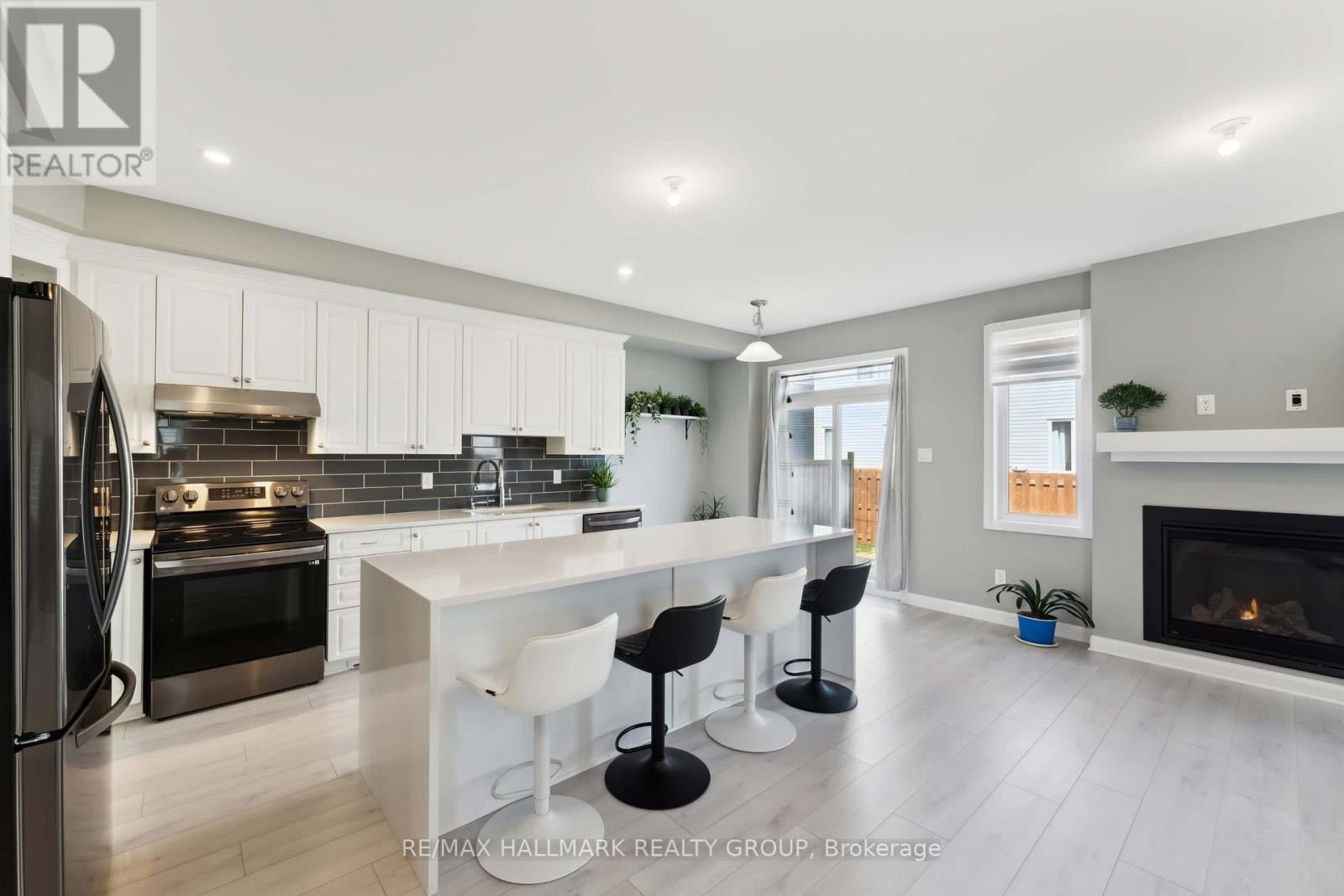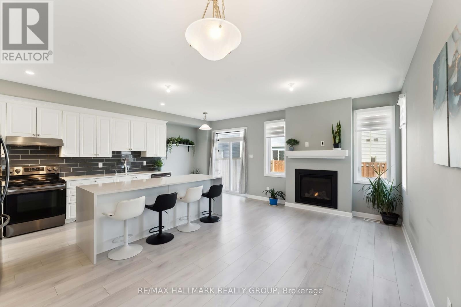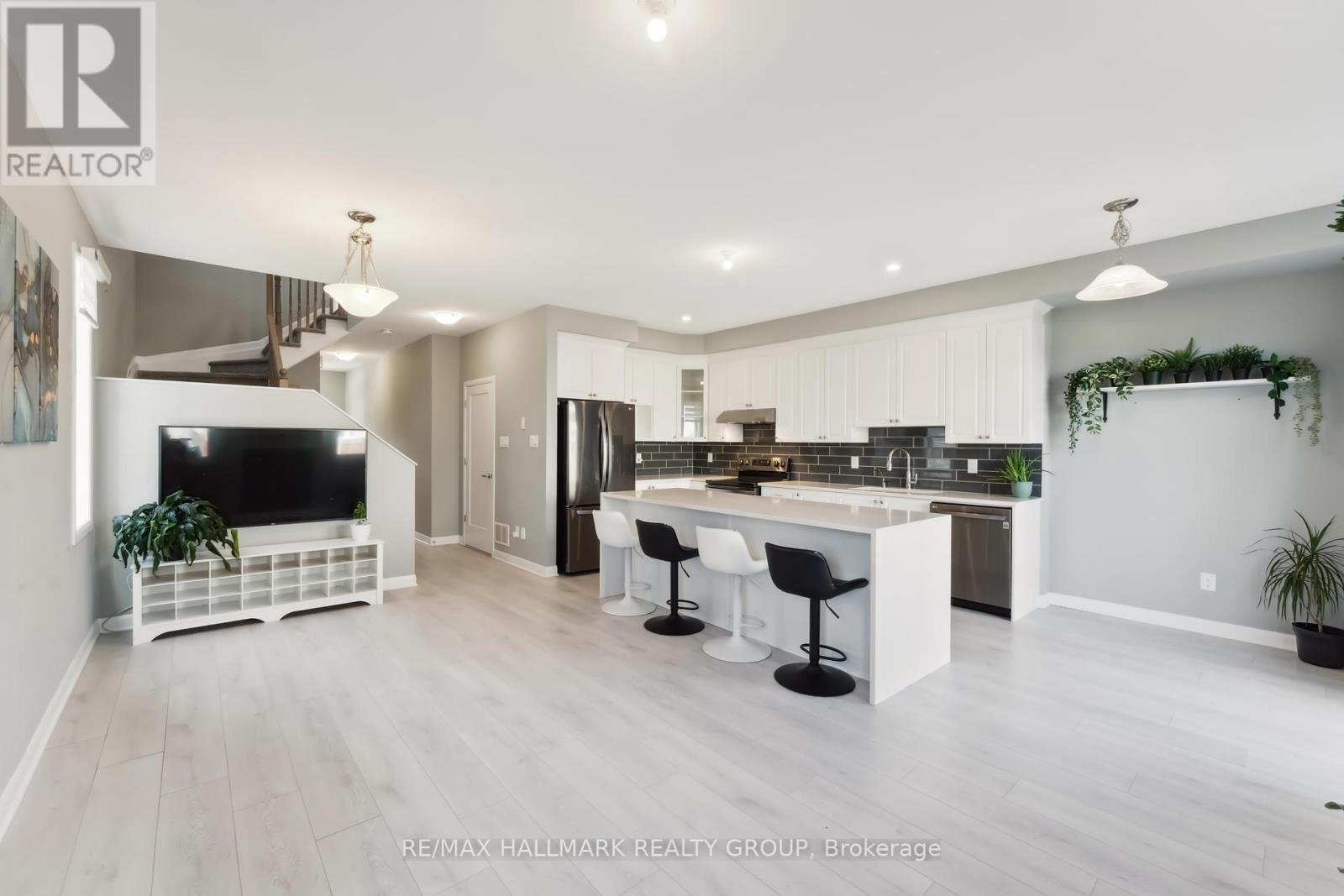 This meticulously maintained 2022 Minto Tahoe end unit is move-in ready and boasts a wealth of premium upgrades throughout.The main floor offers a convenient mudroom directly off the garage and an upgraded powder room, both complementing the bright and airy open-concept living space which showcases stunning quartz countertops and a waterfall kitchen island with comfortable seating for four. The upgraded kitchen cabinetry, w/extended height and crown molding, maximizes storage and exudes a luxurious feel. In the living/dining area, a gas fireplace with blower creates a warm and inviting ambiance.The upper level benefits beautifully from the end-unit design, with a large window illuminating the hallway with natural light. The generously sized bedrooms each have upgraded doors. The upper level bathrooms offer numerous upgrades including quartz countertops, double sinks, and even a central vacuum kick pan in the ensuite. A large and conveniently located laundry room completes this level.The finished basement features elegant maple hardwood railings and stairs leading to a fantastic rec room, along with bathroom and a large amount of storage space.The garage comes with a 40-amp Electric Vehicle EV Charger, and high ceilings for extra storage space. Outside you are steps away from the serene Avalon Trail Path and Aquaview Park which is a beautiful place to take stroll and enjoy the outdoors. New park planned across the street. Convenient location withtons of amenities (schools, groceries, restaurants, gas, transit) minutes away. Further upgrades include: smooth ceilings, pot lights on the mainfloor, high-end appliances, central vac w/kick pans in kitchen and bathroom, upgraded interior doors, gas line options for the stove and dryer, network wiring, sound insulation in laundry room, TV rough-in, 2-ton AC unit, window blinds, eavestroughs.Truly, everything has been taken care of. Simply unpack and enjoy! (id:2469)